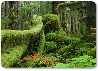 But our rainy days are not for nothing. From them comes something beautiful, something truly quite incredible. All the rain we get allows the most majestic plants to thrive in our lush and moist environment. The Pacific Northwest region is home to over 40 indigenous tree species. And it's only in British Columbia, Washington State and Oregon that you can witness the majesty of the enormous conifers-many over 13 feet in diameter-rise out of a carpet of moss to reach 330 feet into the sky. |